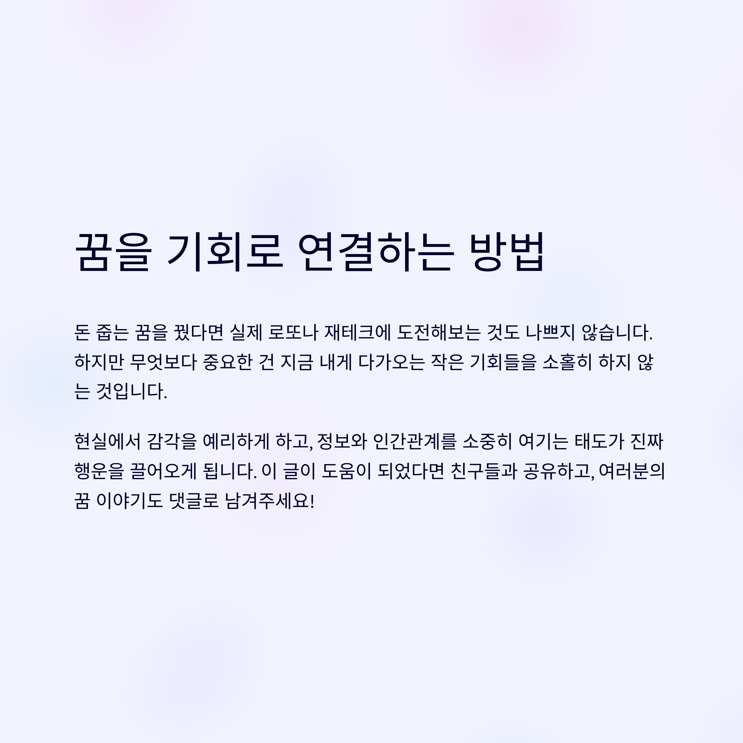 꿈을 기회로 연결하는 방법은?