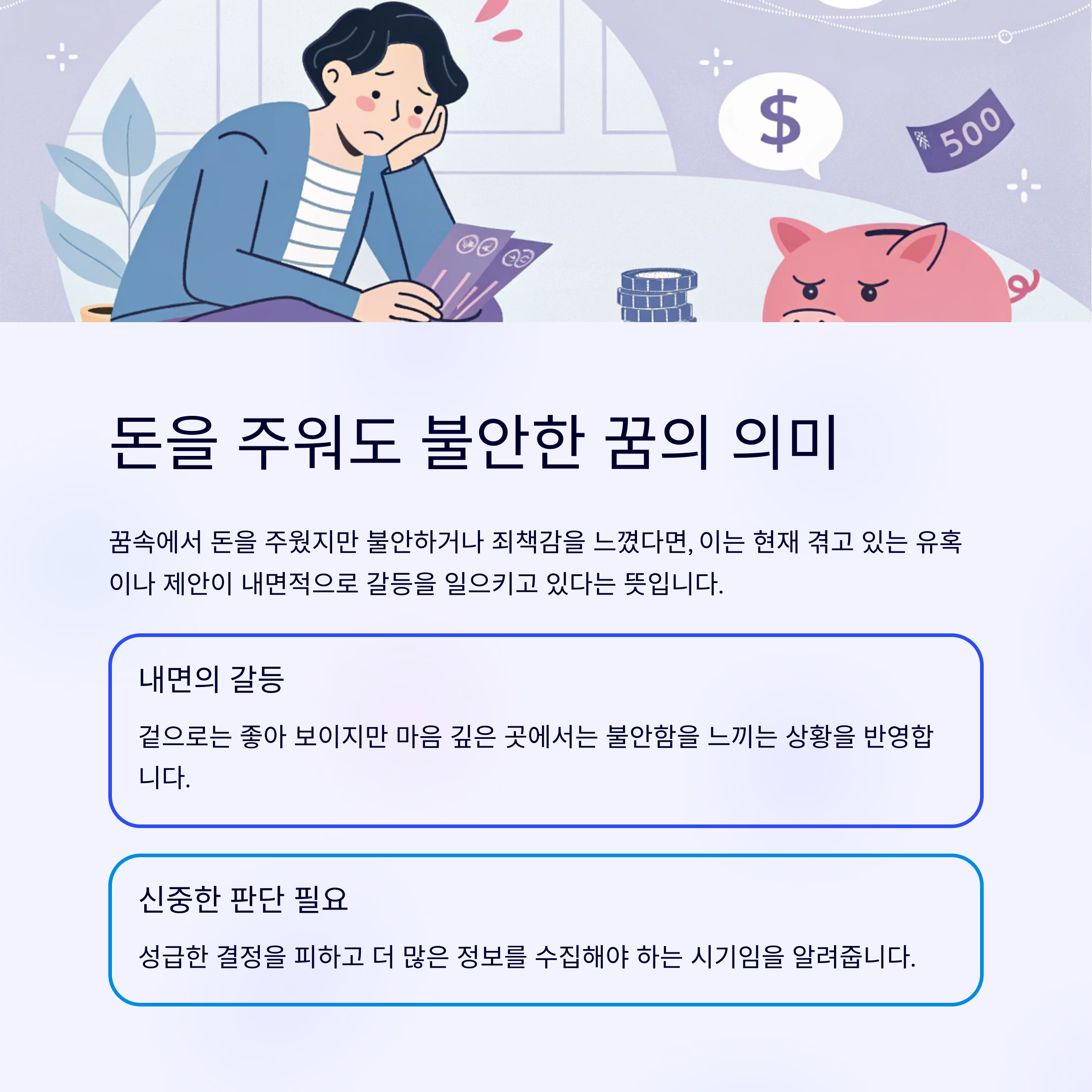 꿈속에서 돈을 주웠지만 불안하거나 죄책감을 느꼈다면