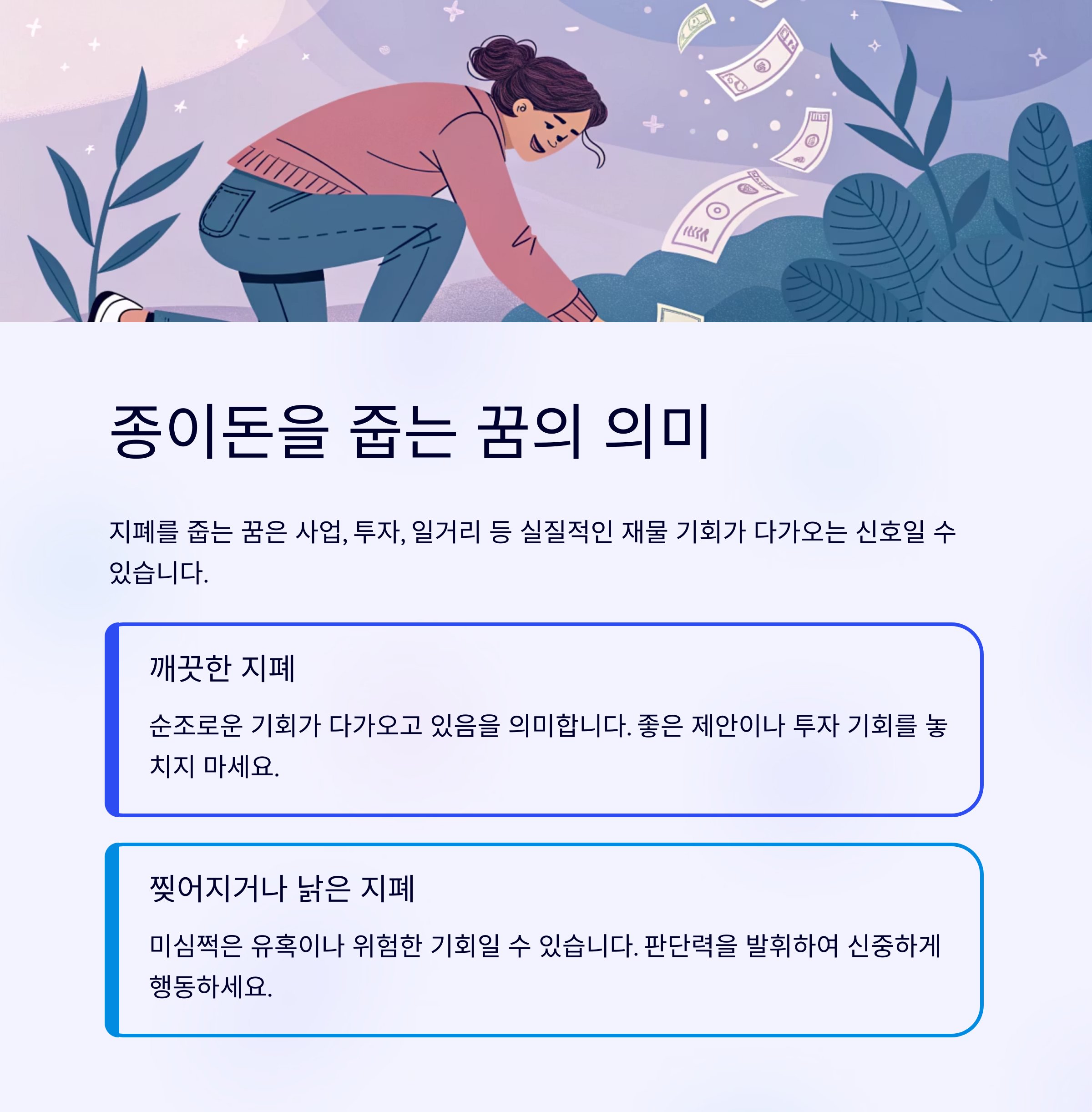 이 글에서는 돈 줍는 꿈이 실제로 어떤 운을 뜻하는지,