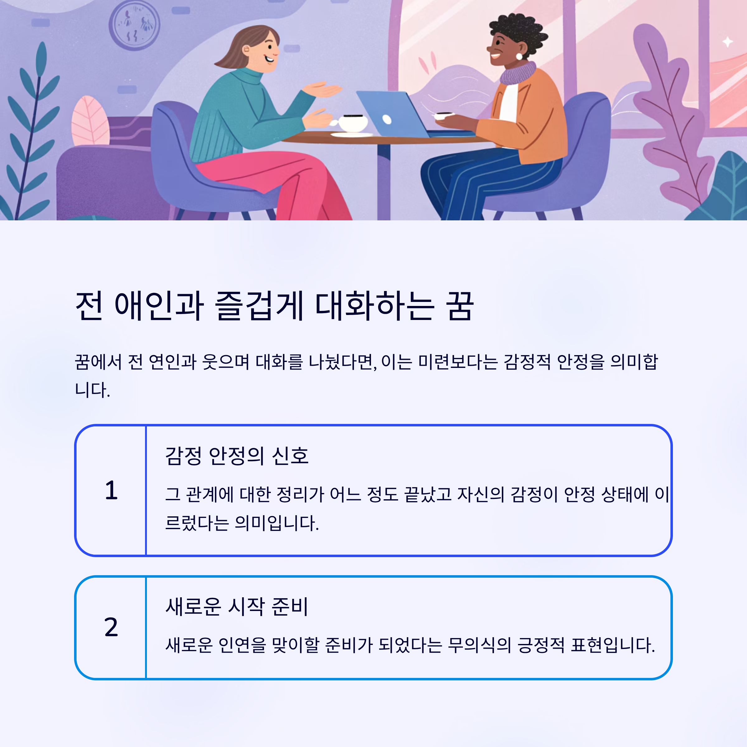 전 애인과 즐겁게 대화하는 꿈: 미련보다는 감정 안정의 신호